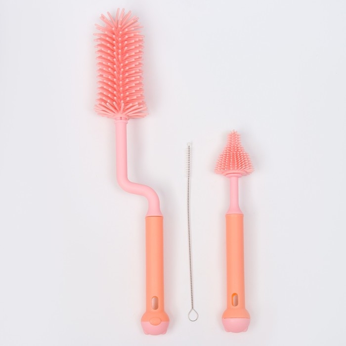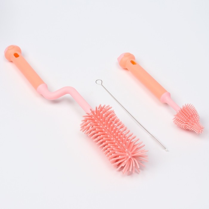 Набор ёршиков для бутылочек и сосок, 3 шт., цвет розовый