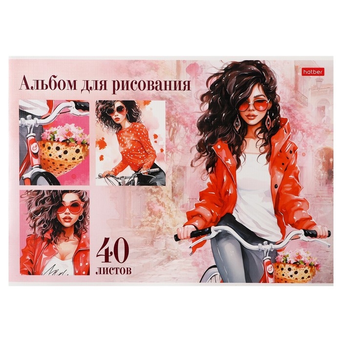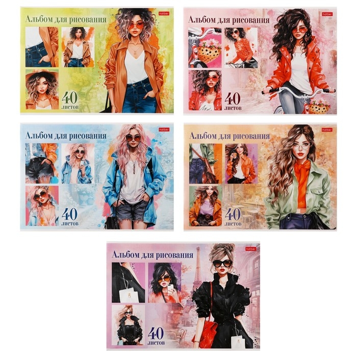 Альбом для рисования А4, 40 листов "Стильные красотки", обложка мелованный картон, тиснение, блок 100 г/м2, МИКС