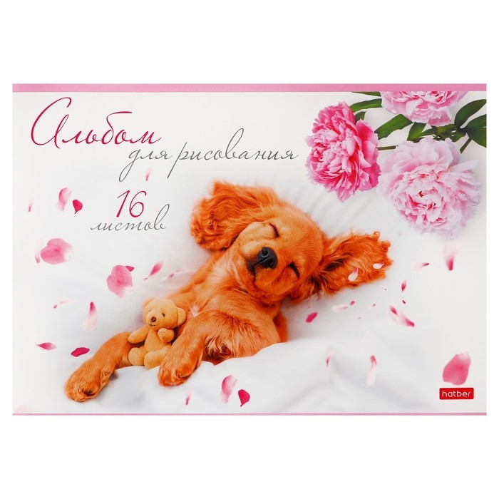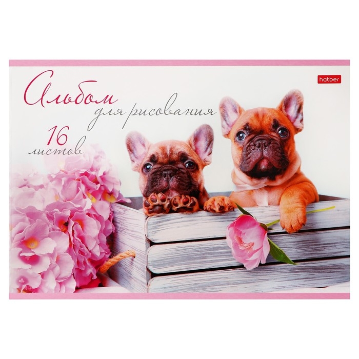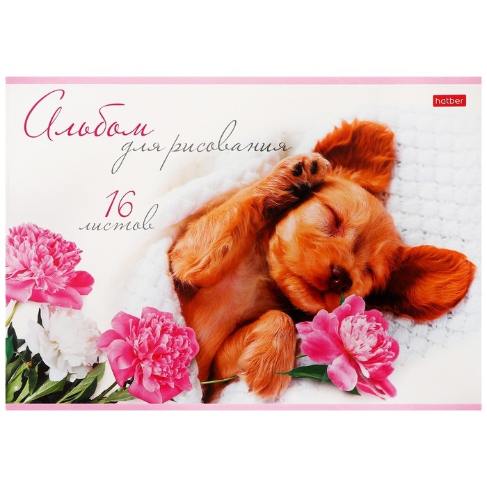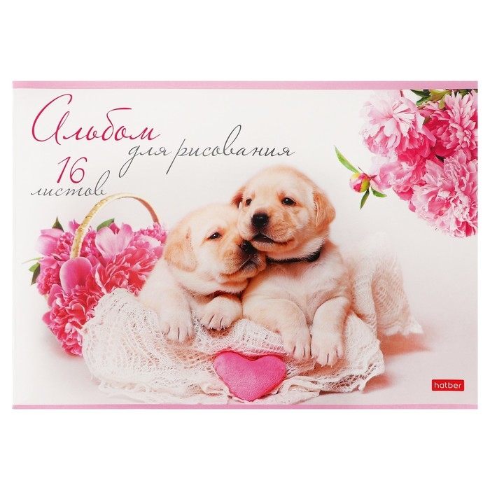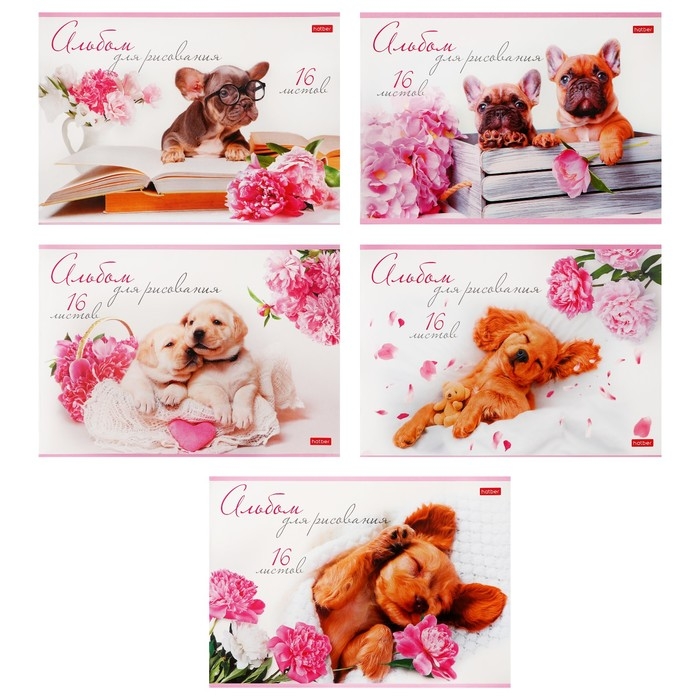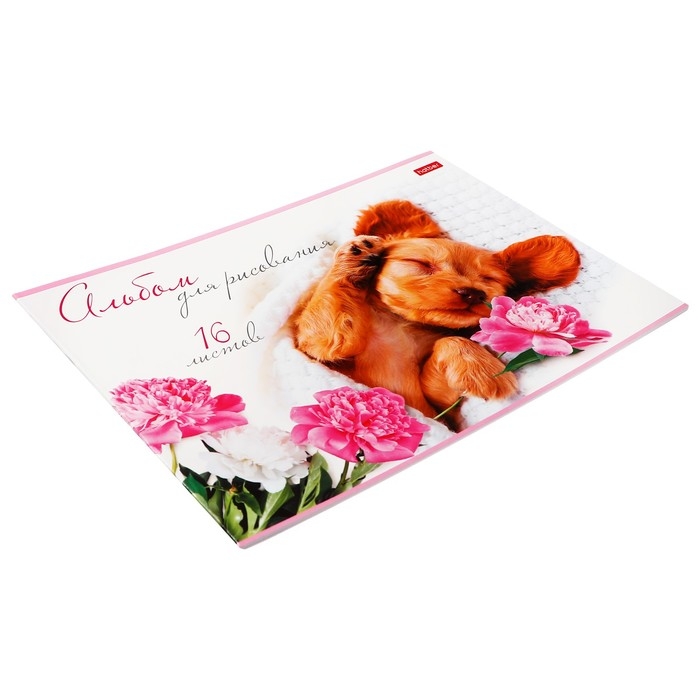 Альбом для рисования А4, 16 листов "Очаровательные щенки", обложка мелованный картон, блок 100 г/м2, МИКС 5 видов