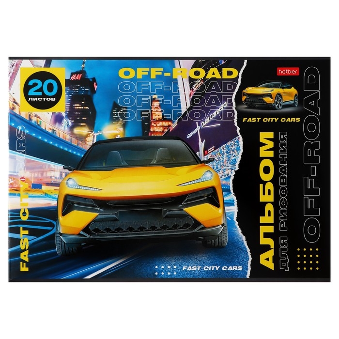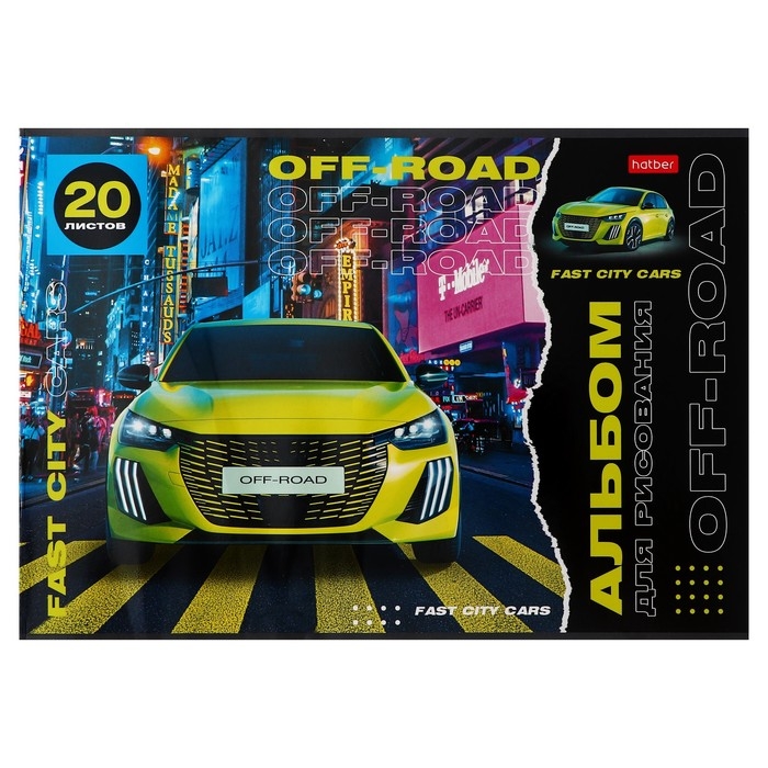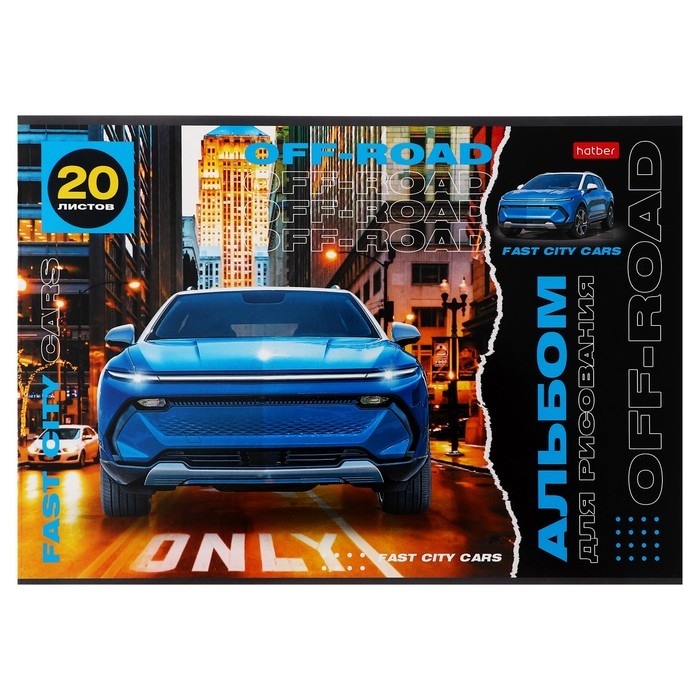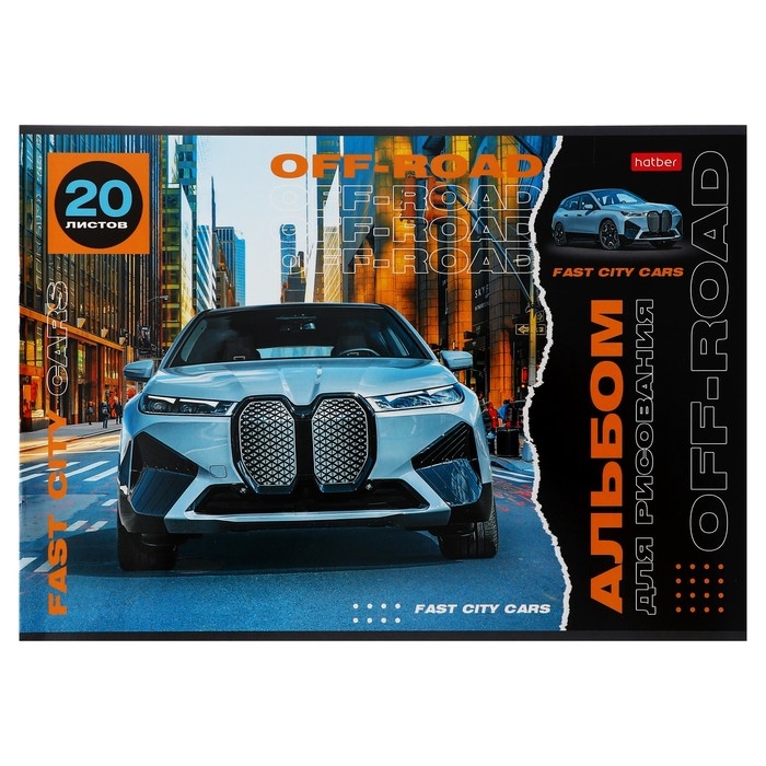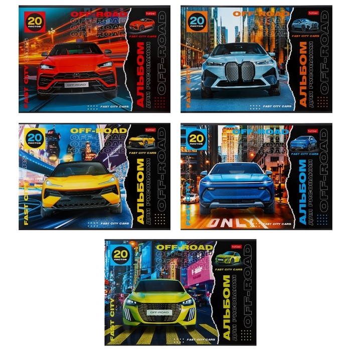 Альбом для рисования А4, 20 листов "Внедорожники", обложка мелованный картон, блок 100 г/м2, МИКС 5 видов