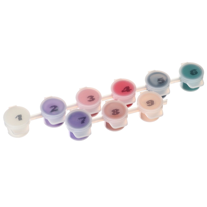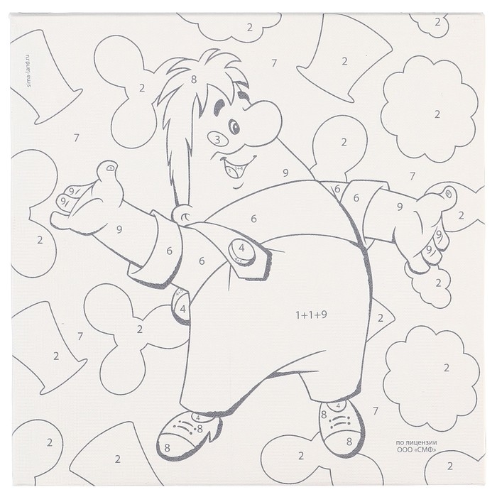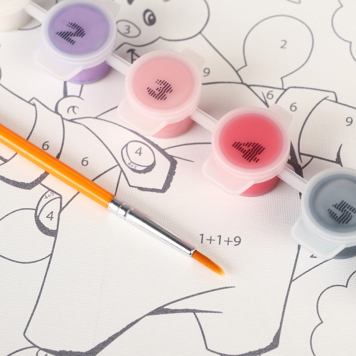 Холст разделён на фрагменты, на каждом из которых указано число, соответствующее цвету, которым нужно закрасить данный участок. В набор входят все необходимые оттенки красок, каждый из которых пронумерован.