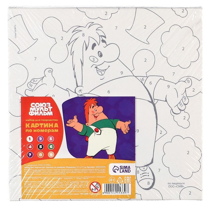 Картина по номерам для детей, 17х17 см, Малыш и Карлсон