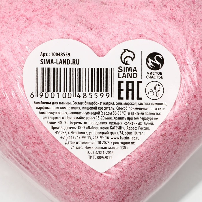 Бомбочка для ванны «Люблю тебя», 130 г, аромат пионов, ЧИСТОЕ СЧАСТЬЕ