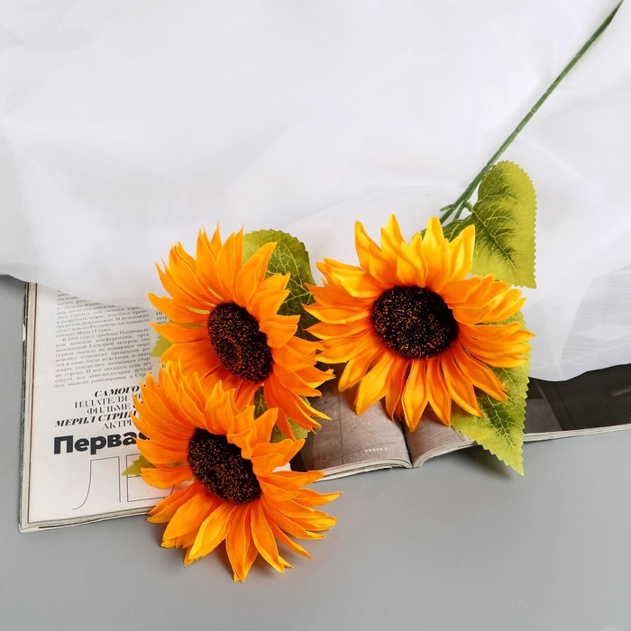Цветы искусственные "Подсолнух галант" 60 см d-12 см, оранжевый