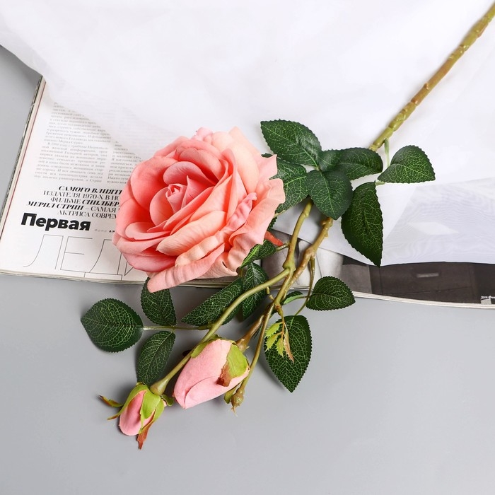 Цветы искусственные "Роза Вхите" 66 см, светло-розовый