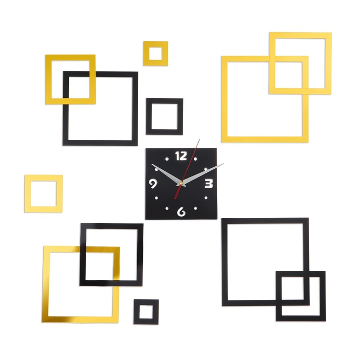 Часы настенные интерьерные, 3d "Квадратиш", наклейка, большие, циферблат 15 см