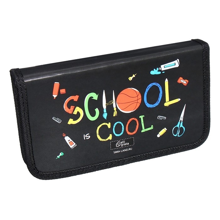 Пенал 1 секция, 115 х 205 мм, с наполнением 16 предметов, Calligrata "School" ламинированный картон, 30П26/set