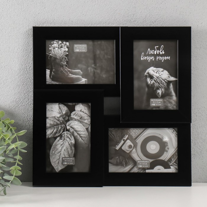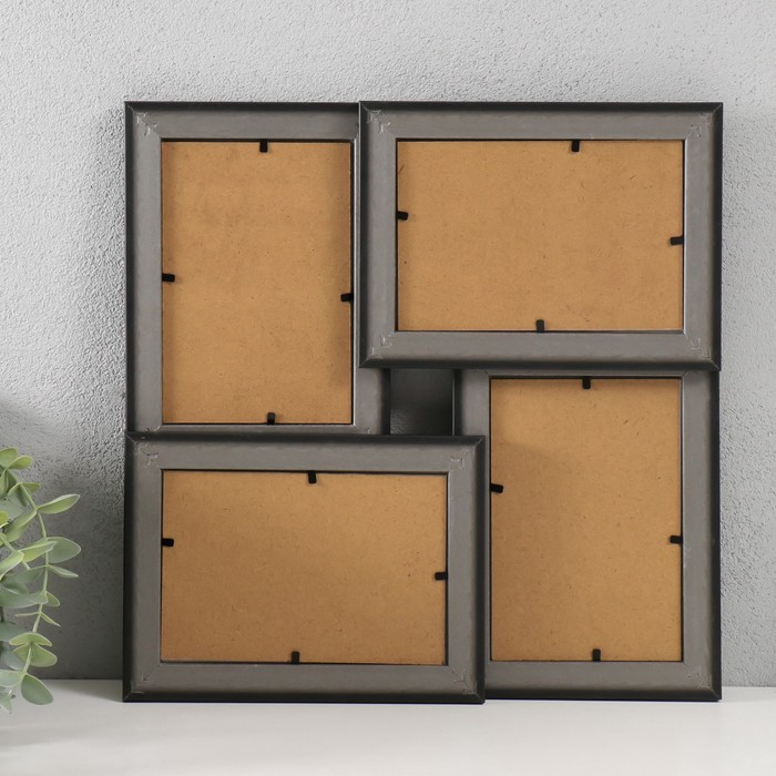 Фоторамка пластик на 4 фото 10х15 см "Аврора" черная 31,5х31,5 см