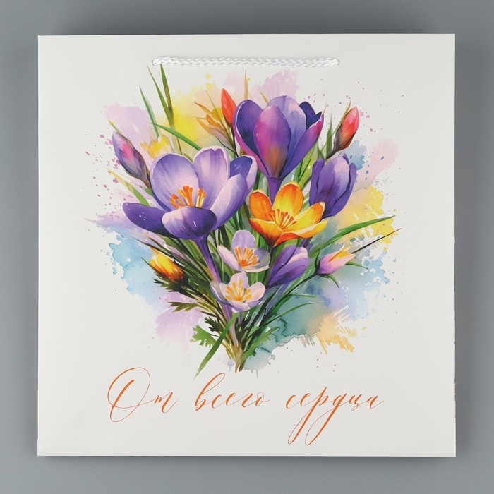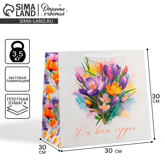 Пакет подарочный квадратный, упаковка, «От всей души», 30 х 30 х 30 см