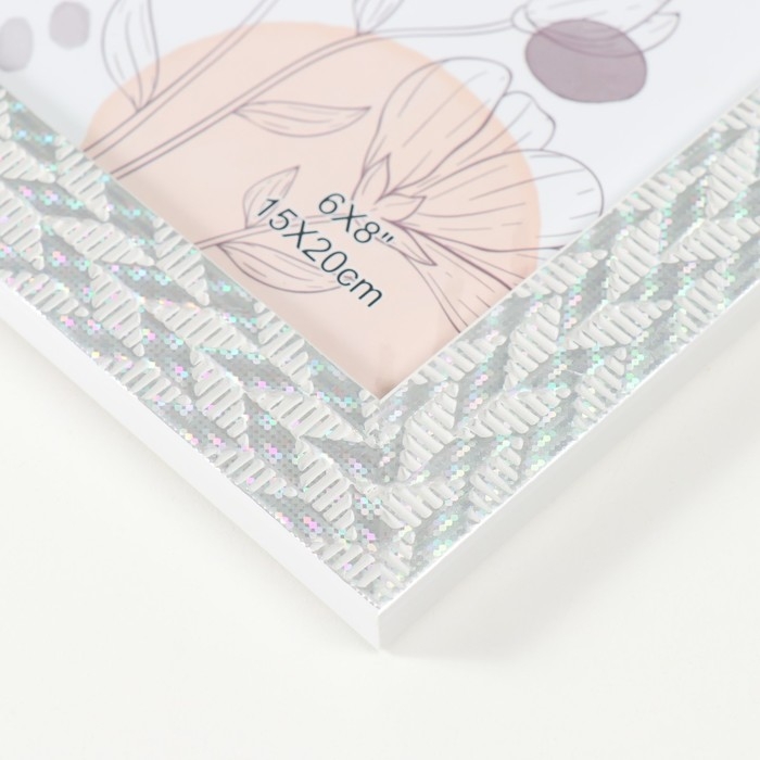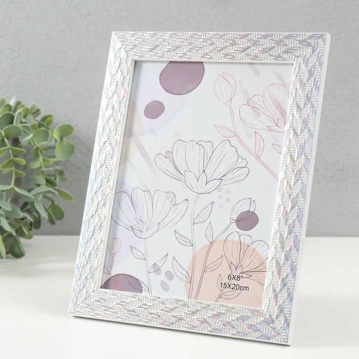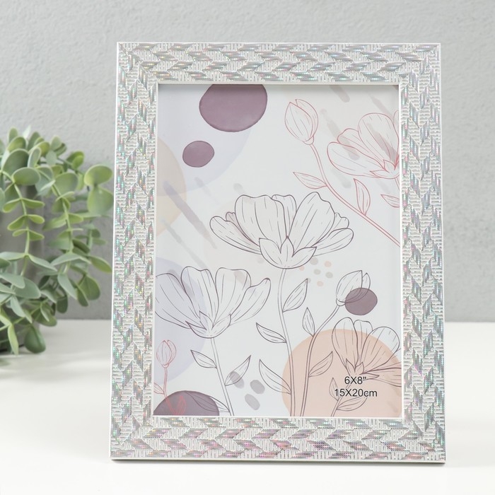 Фоторамка пластик 15х20 см "Двойная коса" серебро с голографией 18х23,8 см