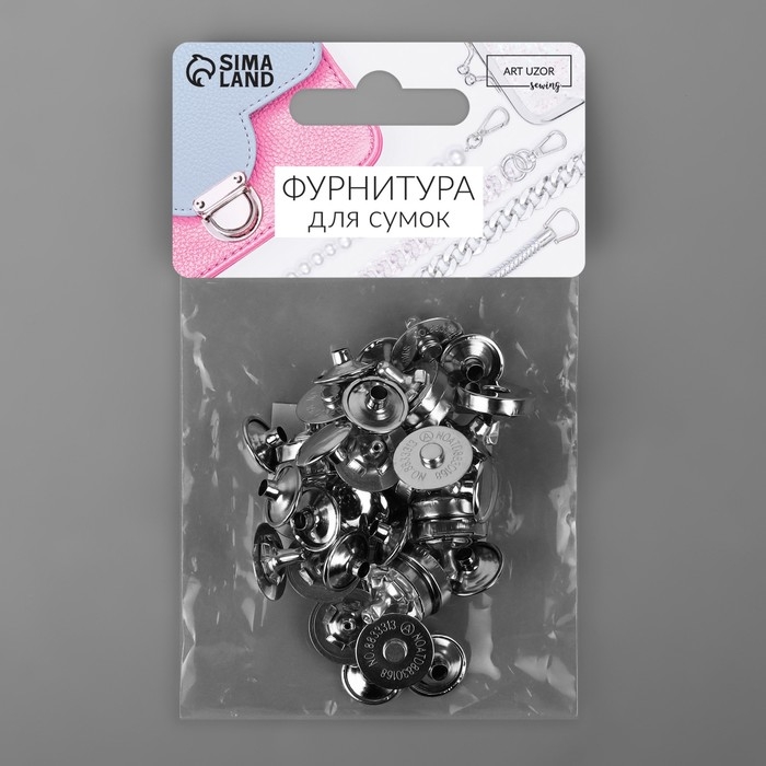 Кнопки магнитные, пришивные, d = 18 мм, 10 шт, цвет серебряный