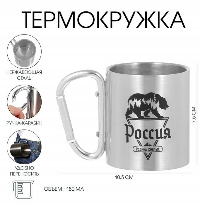 Термокружка, 180 мл, Карабин "Россия - родина смелых", 7.5 х 10.5 см