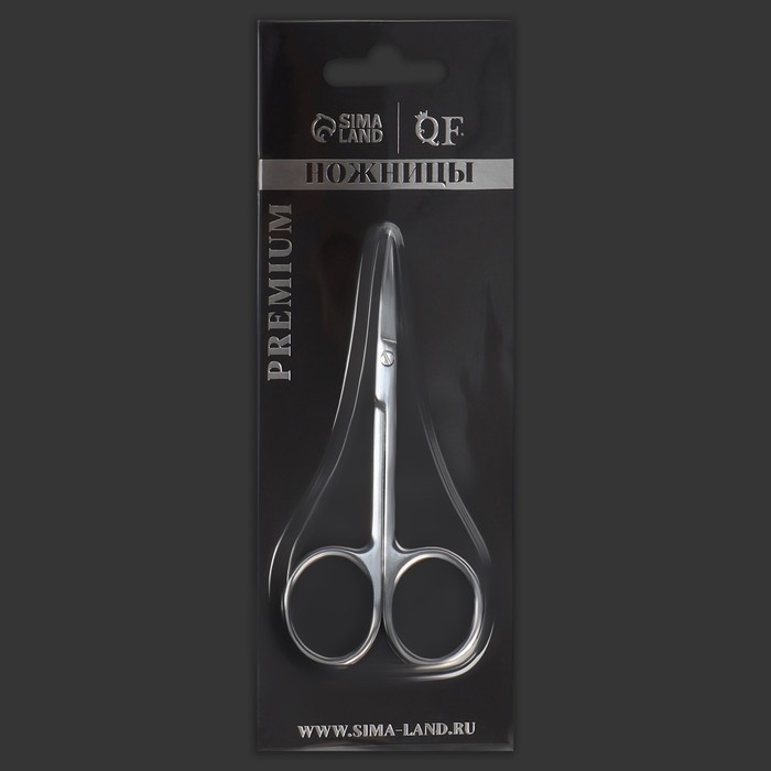 Ножницы маникюрные «Premium», загнутые, широкие, заострённые, 9,5 см, на блистере, цвет серебристый