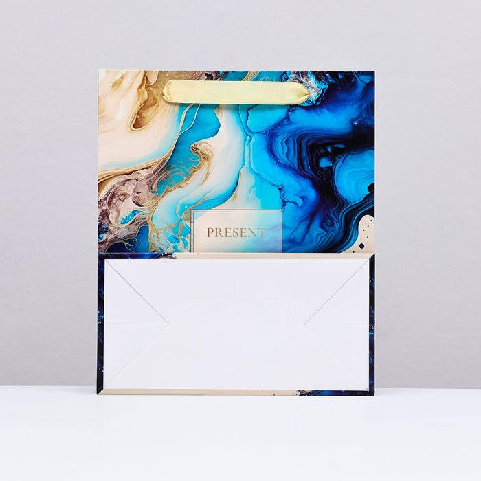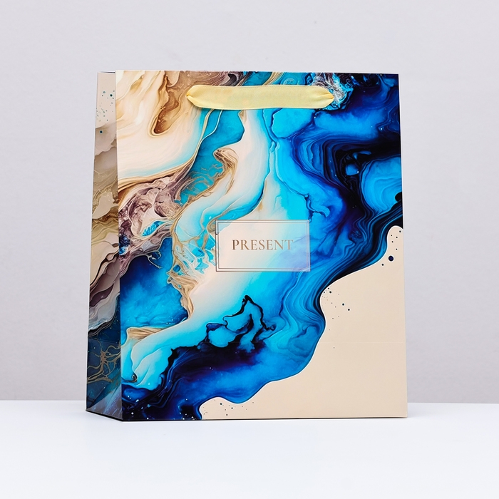 Пакет ламинированный вертикальный PRESENT, голубой-бежевый, 23 х 27 х 11,5 см