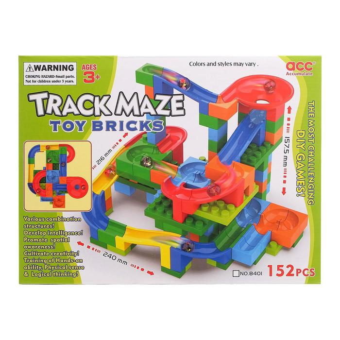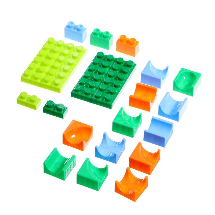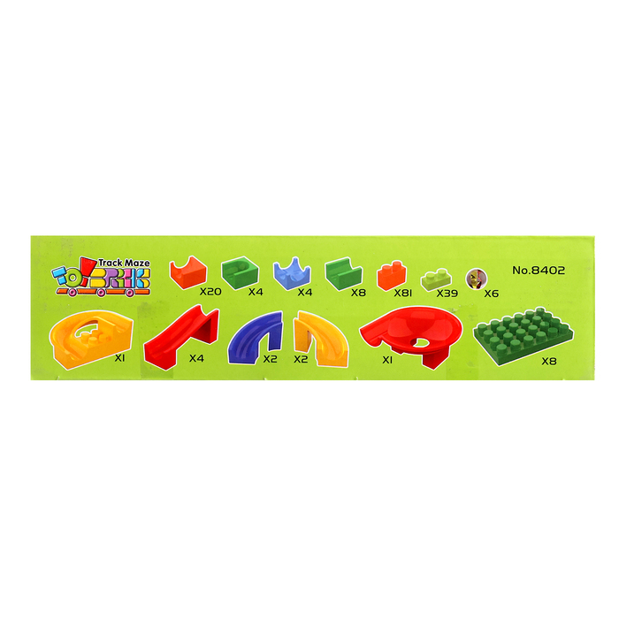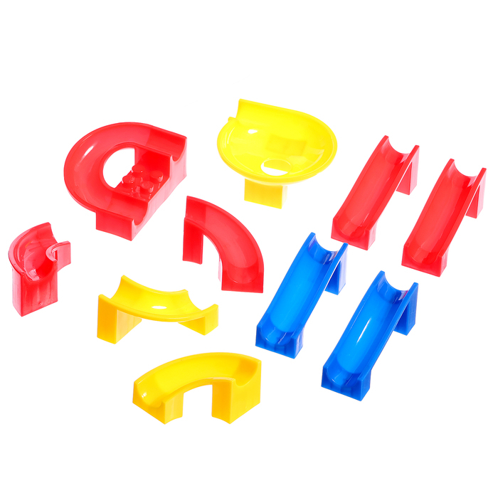 Набор состоит блочных элементов, разноцветных мостиков и извилистых дорожек. Малыш без труда соорудит трассу любой длины и сложности и будет следить за перемещениями шариков.