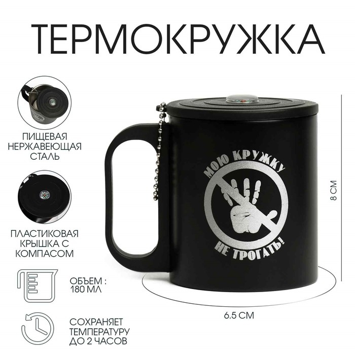 Термокружка, 180 мл, Туризм "Мою кружку не трогать", сохраняет тепло 2 ч, компас