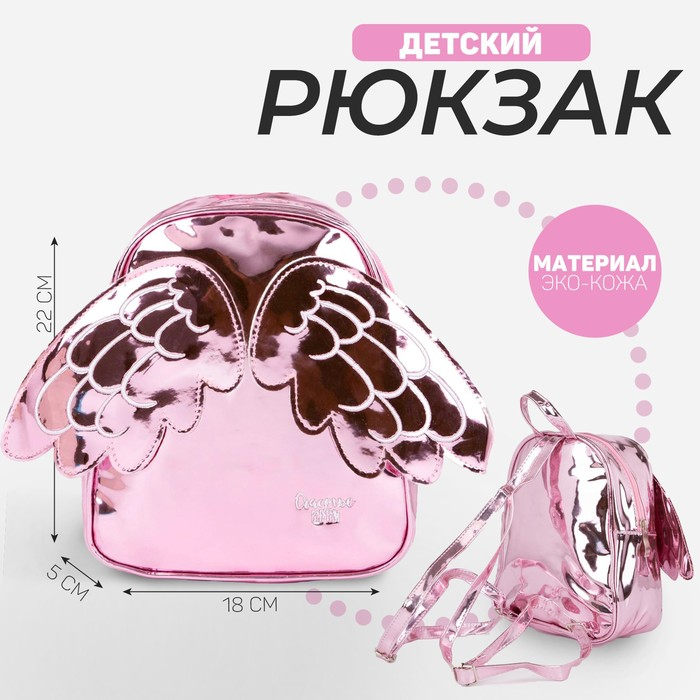 Рюкзак детский для девочки с крыльями, отдел на молнии, цвет розовый