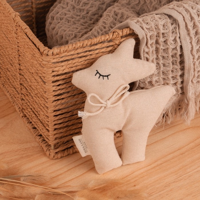 Мягкая игрушка «Оленёнок», 15 см, цвет бежевый, с бантиком