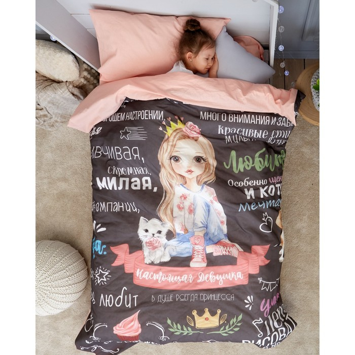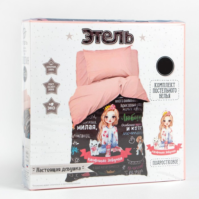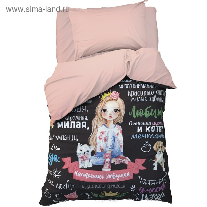 Постельное бельё 1,5 сп. Этель «Настоящая Девушка» 145×210 см, 150×210 см, 50×70 см – 1 шт, 100% хлопок