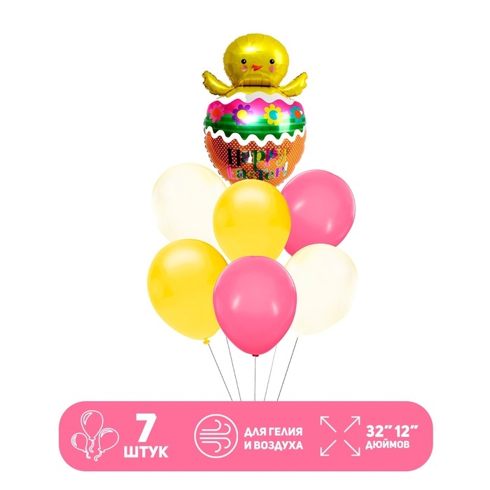 Набор шаров «Пасха. Цыплёнок» поможет создать праздничную атмосферу в доме или любом другом помещении. В комплект входят 7 шаров: 5 латексных и 2 фольгированных, включая яркий шар в форме цыплёнка, который станет центром внимания. Шары выполнены в праздничных, весенних тонах, что идеально подходит для украшения к Пасхе.