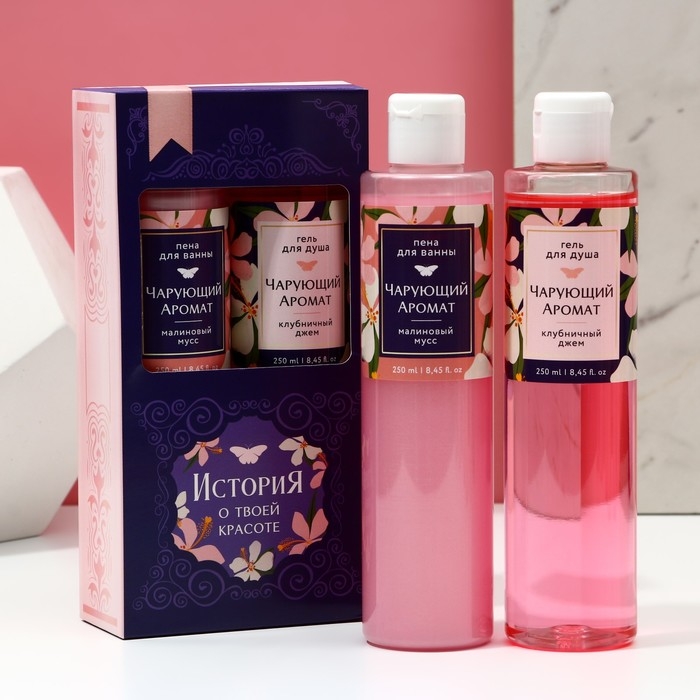 Подарочный набор косметики «История о твоей красоте», гель для душа 250 мл и пена для ванны 250 мл, ЧИСТОЕ СЧАСТЬЕ