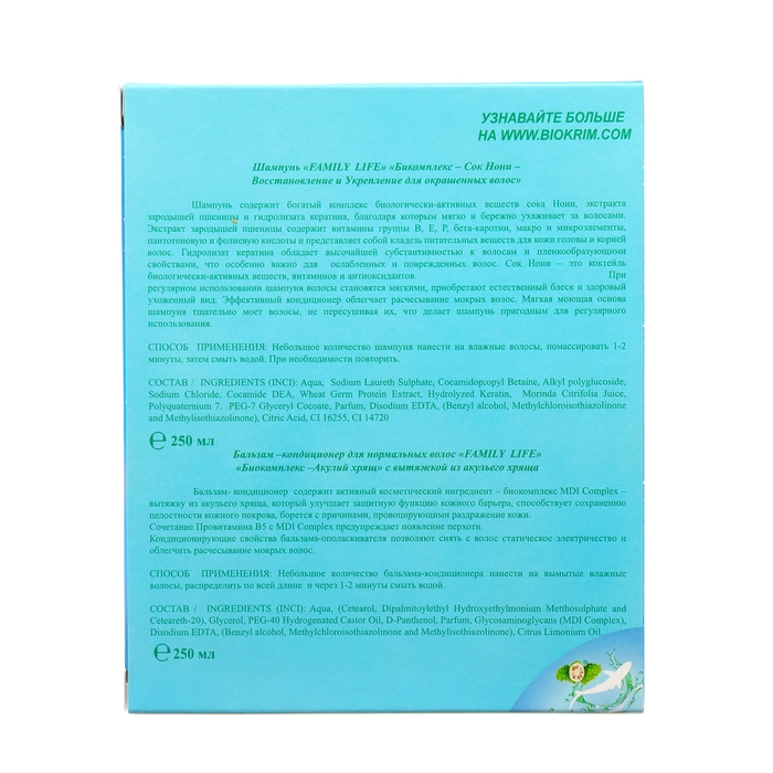 Радуйте себя и своих близких этим уникальным подарочным набором "Family Life". Специально разработанный для женщин, этот набор обеспечивает интенсивный уход за окрашенными волосами, восстанавливая и укрепляя их.