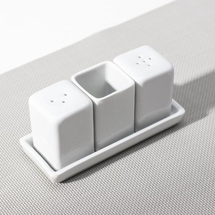 Набор для специй фарфоровый «Уют», 4 шт, солонка 50 мл, перечница 50 мл, стаканчик 60 мл, цвет белый