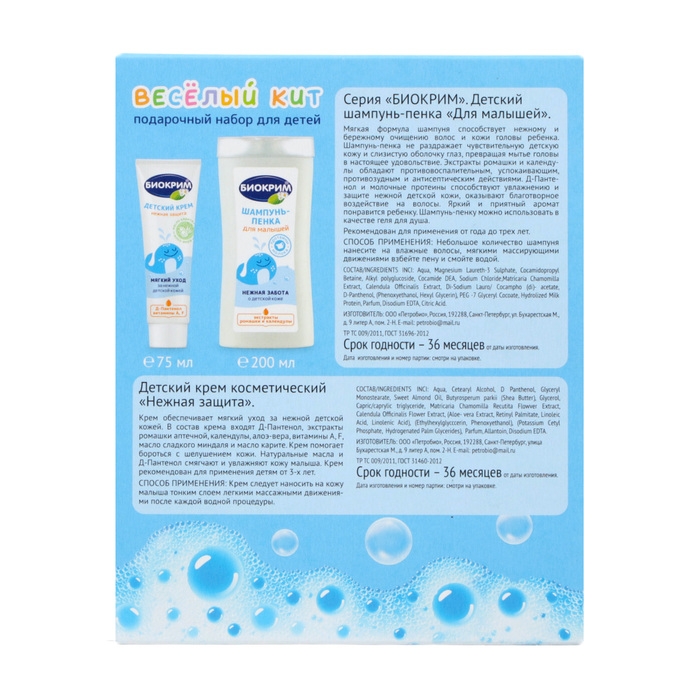Подарочный набор косметики детский Биокрим: шампунь-пенка, 200 мл + крем, 75 мл