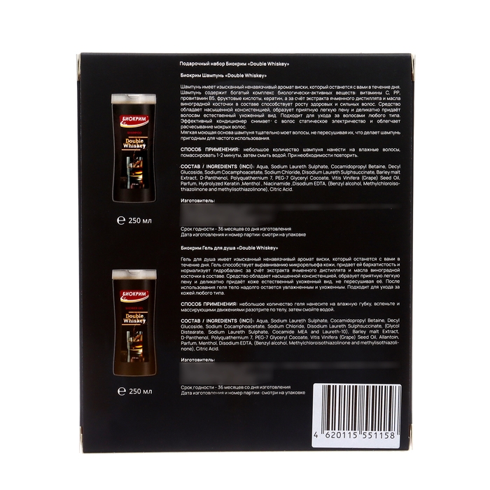Подарочный набор косметики мужской Double Whiskey: шампунь, 250 мл + гель для душа, 250 мл