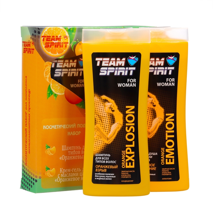 Погрузитесь в атмосферу свежести и ярких ощущений с нашим подарочным набором Team Spirit Orange Explosion. Этот набор предназначен для женщин, которые ценят энергию цитрусовых и хотят добавить свежести в свой уход за волосами и кожей.