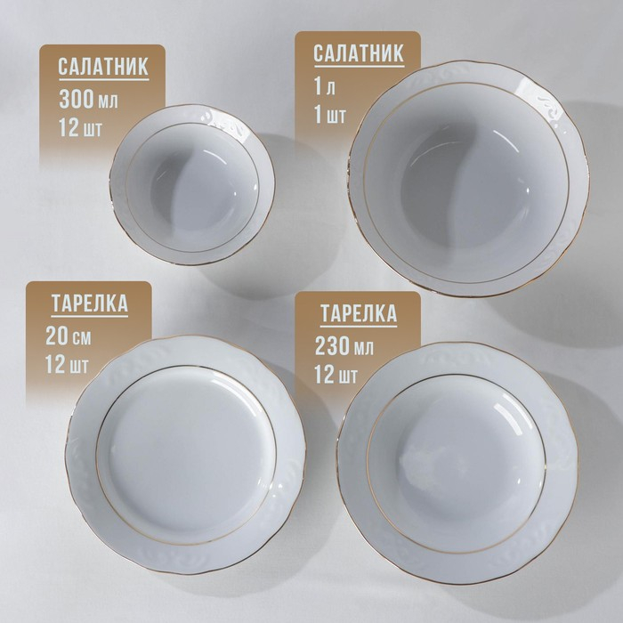 Сервиз столовый фарфоровый «Бельё», 48 предметов