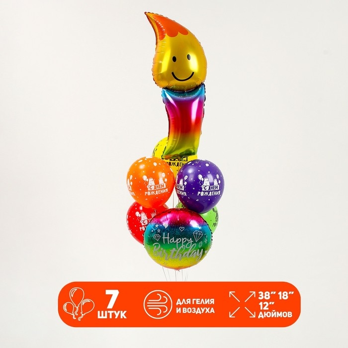 Набор шаров «Happy birthday. Свеча», латекс, фольга, набор 7 шт.