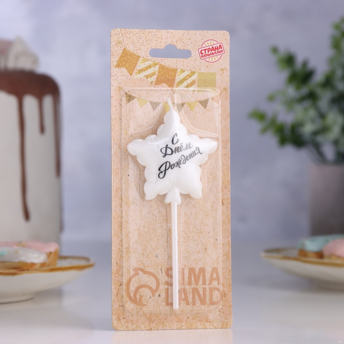 Свеча в торт "Воздушный шарик. Звезда", 5,5 см, жемчужный