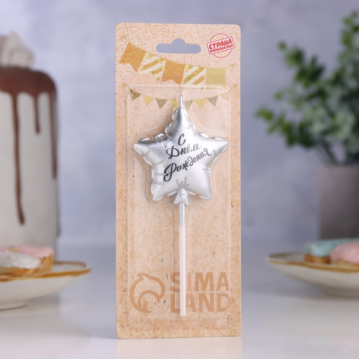 Свеча в торт "Воздушный шарик. Звезда", 5,5 см, серебро