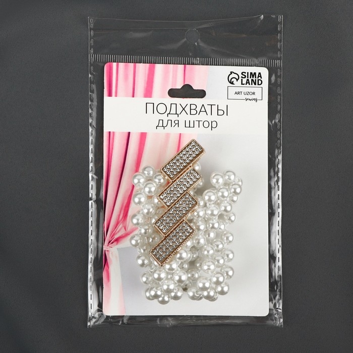 Подхват для штор «Кирпичики», жемчуг на резинке, 2,2 × 7,5 см, 2 × 45 см, цвет белый/золотой