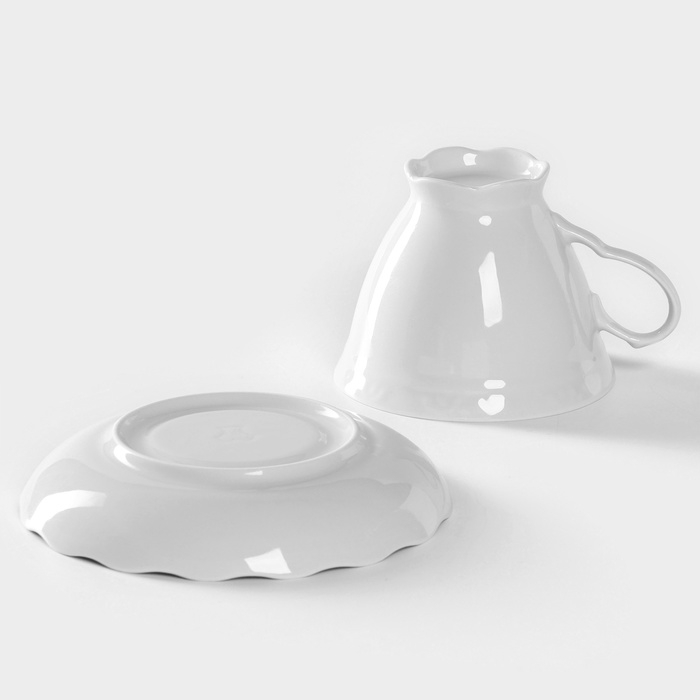 Чайная пара фарфоровая Magistro «Бланш», 2 предмета: чашка 250 мл, блюдце d=15,5 см, цвет белый
