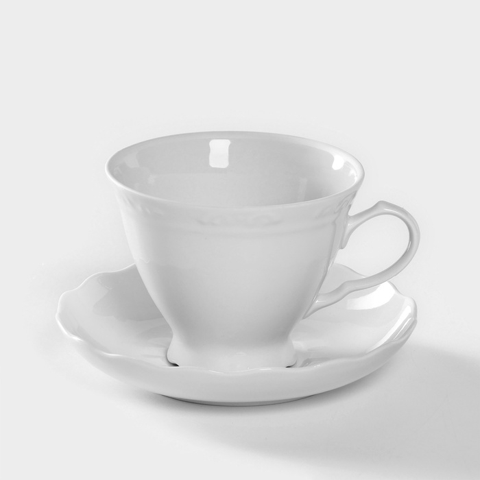 Чайная пара фарфоровая Magistro Rodos, 2 предмета: чашка 220 мл, блюдце d=15 см, цвет белый