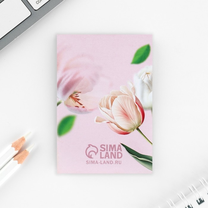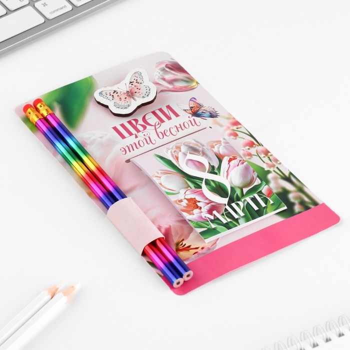 Подарочный набор: блокнот, карандаши (2 шт) и значок «8 марта»