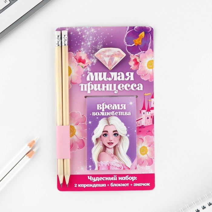 Подарочный набор блокнот, карандаши (2 шт) и значок «Милая принцесса»