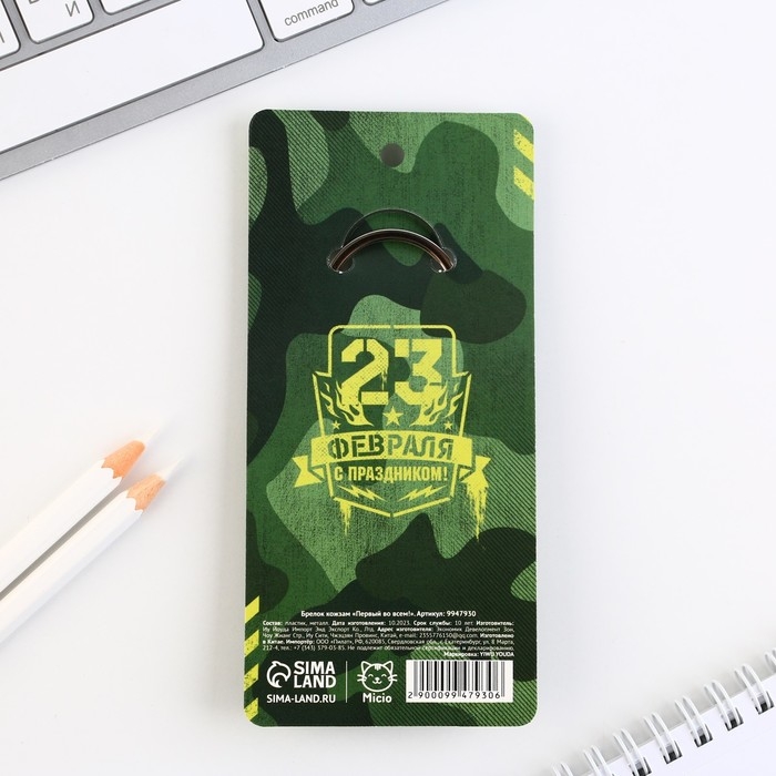 Брелок для ключей кожзам «Первый во всем!», 11 х 2.5 см