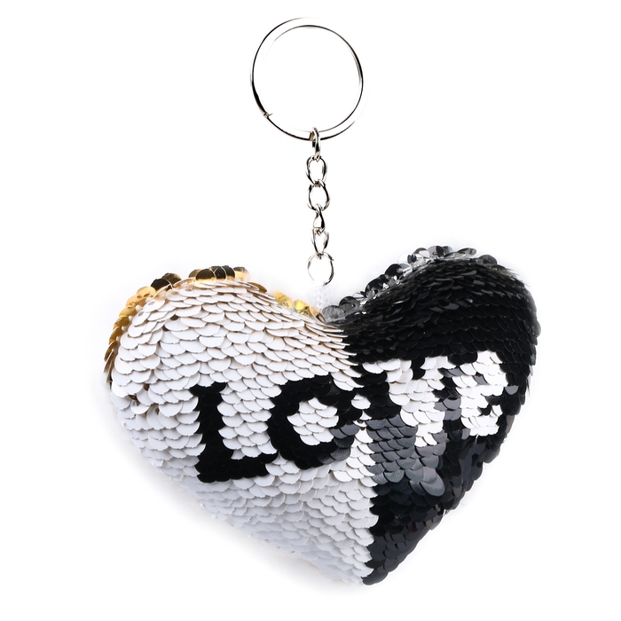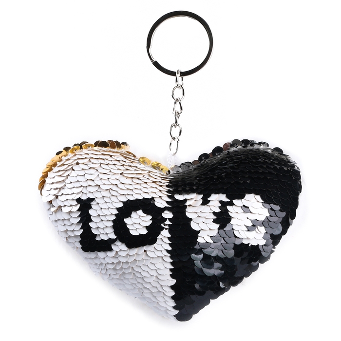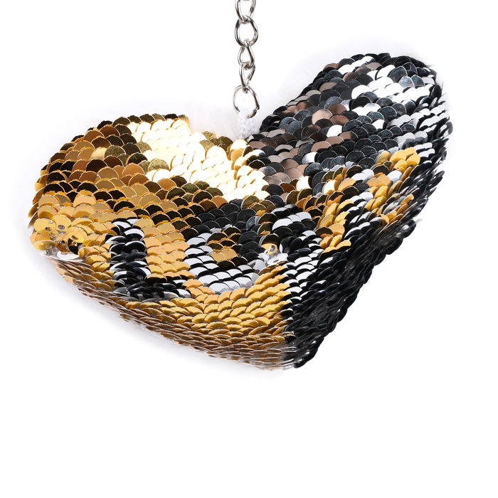Мягкая игрушка «Сердечко» с пайетками, на брелоке, 10 см, цвет белый