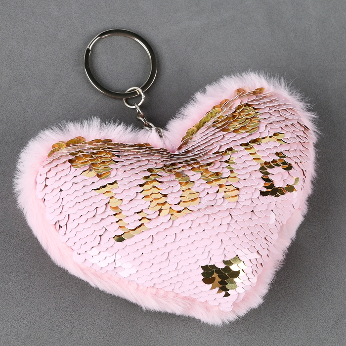 Мягкая игрушка «Сердечко» с пайетками, на брелоке, 10 см, цвет нежно-розовый