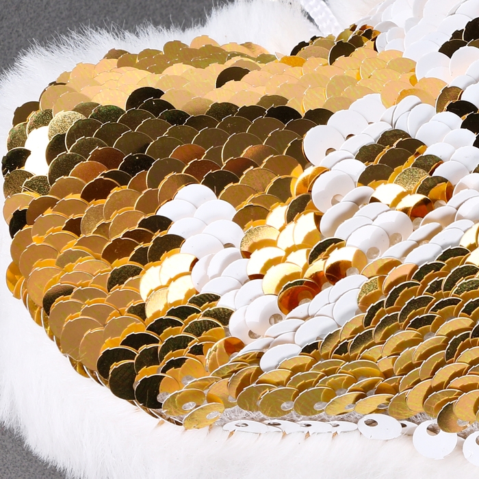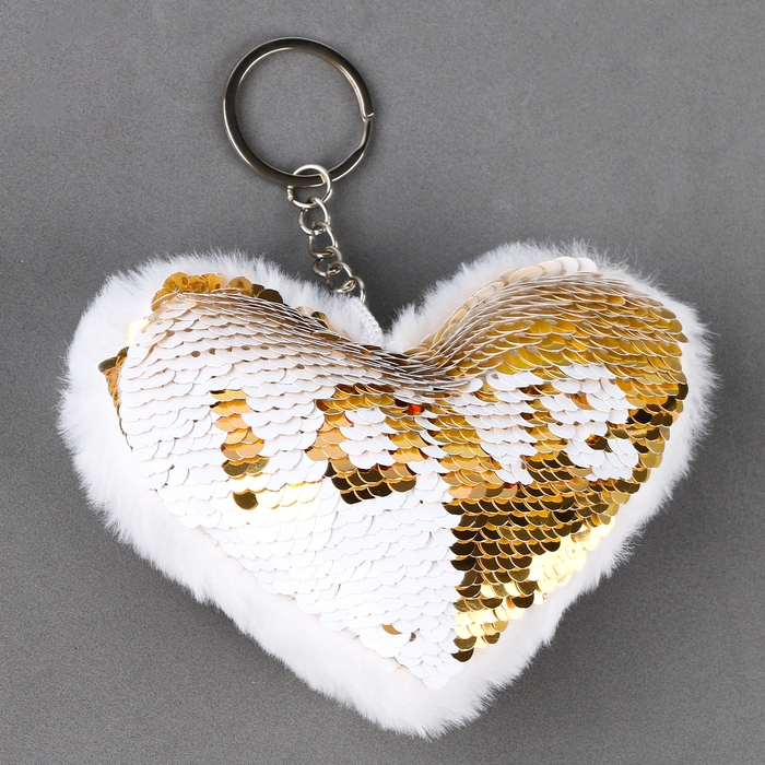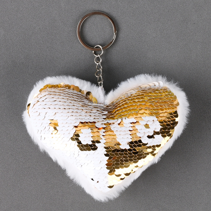 Мягкая игрушка «Сердечко» с пайетками, на брелоке, 10 см, цвет бело-золотой