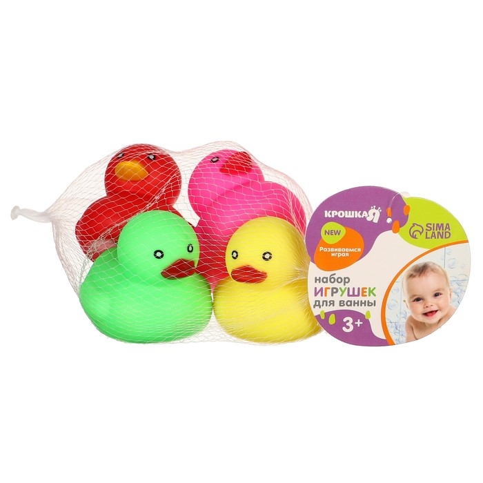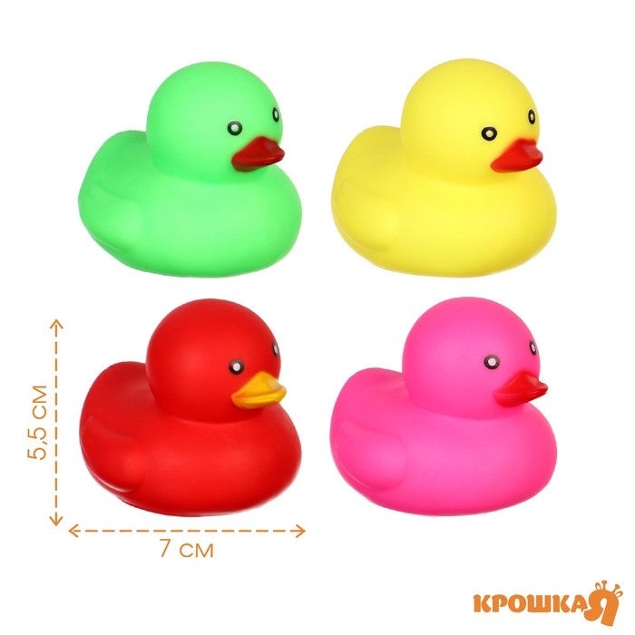 Набор резиновых игрушек для ванны «Уточки разноцветные», 7 см, с пищалкой, 4 шт, Крошка Я