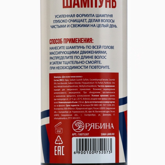 Шампунь для волос и бороды 2в1, 250 мл, HARD LINE