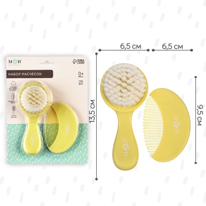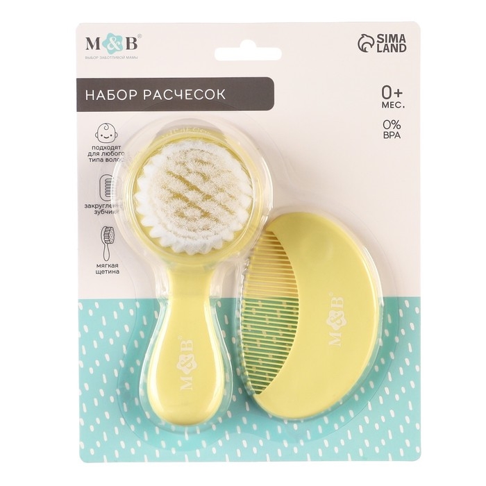 Расческа-щетка с мягкой щетиной и удобная расческа с закругленными зубчиками предназначены для малышей с первых дней жизни.