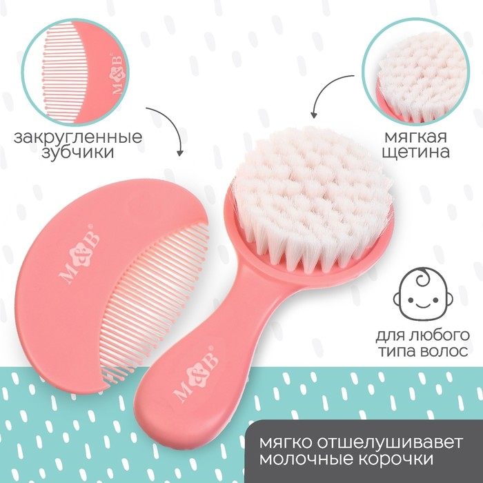 Расческа-щетка с мягкой щетиной и удобная расческа с закругленными зубчиками предназначены для малышей с первых дней жизни.