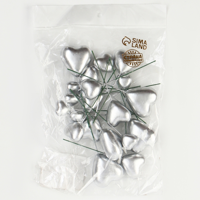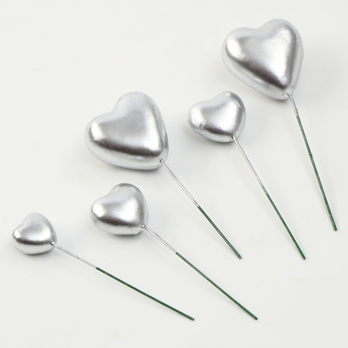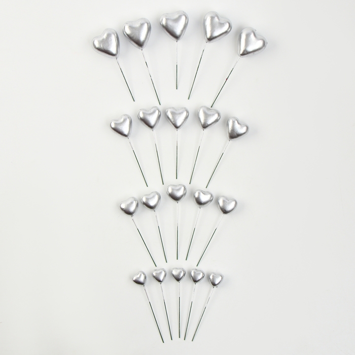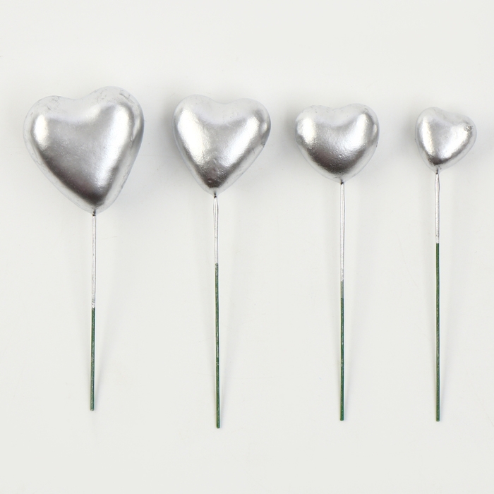 Набор топперов «Сердечки», 12 см, цвет серебро