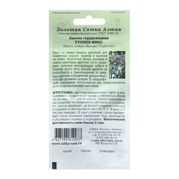Семена цветов Бакопа "Утопия смесь", 3 шт