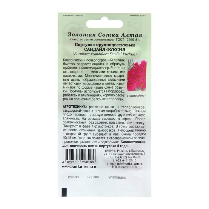 Семена цветов Портулак "Сандайл Фуксия", 5 шт